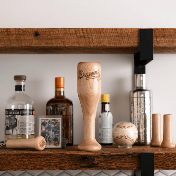The Atlanta Braves Wined Up® a mini baseball bat wine glass. This 100% birch wood mini baseball bat is perfect to sip from on the patio, sitting poolside, while watching the "big game", or even tailgating.