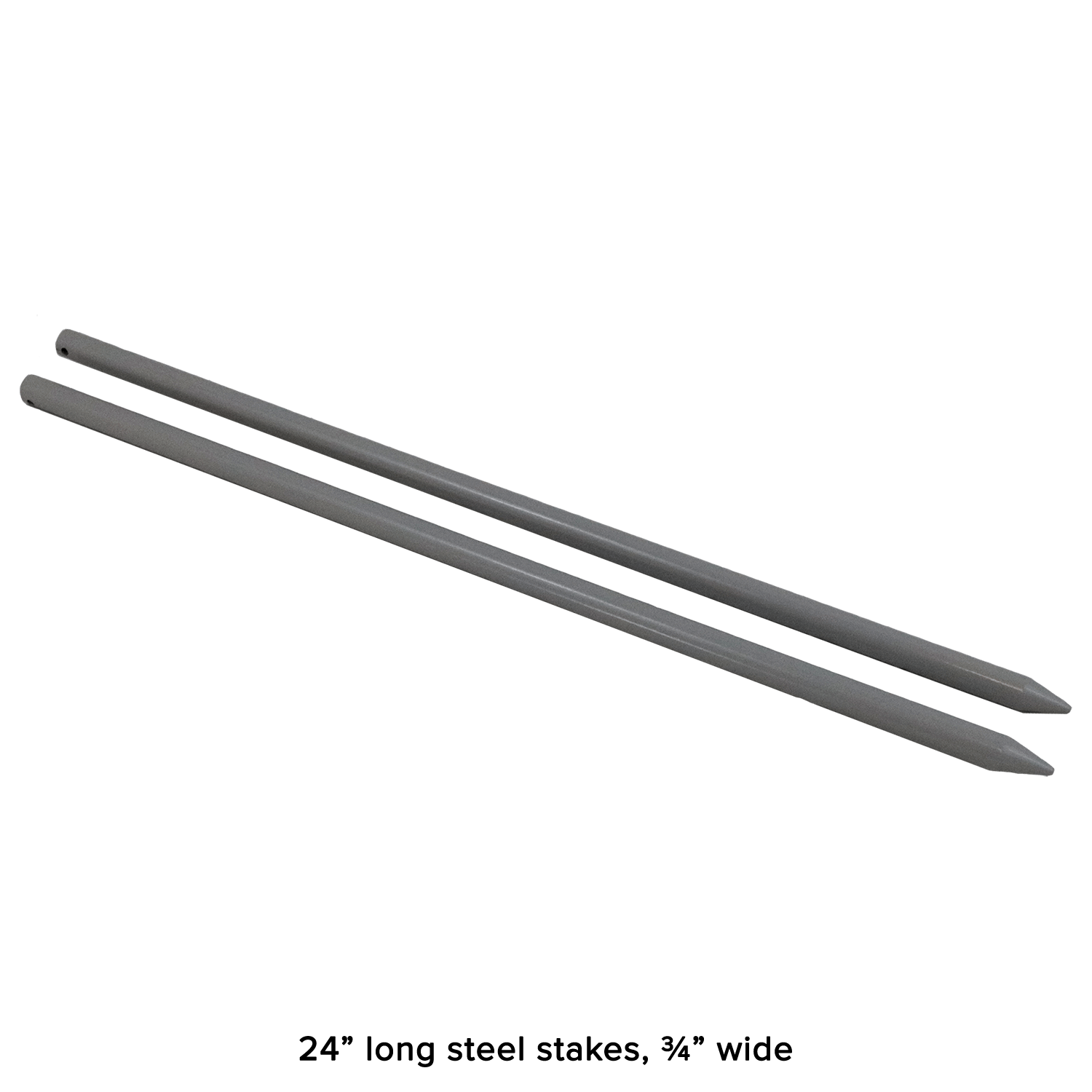 - Each horseshoe is medium weight ~2.25 lbs., steel stakes are 24” long and ¾” wide.