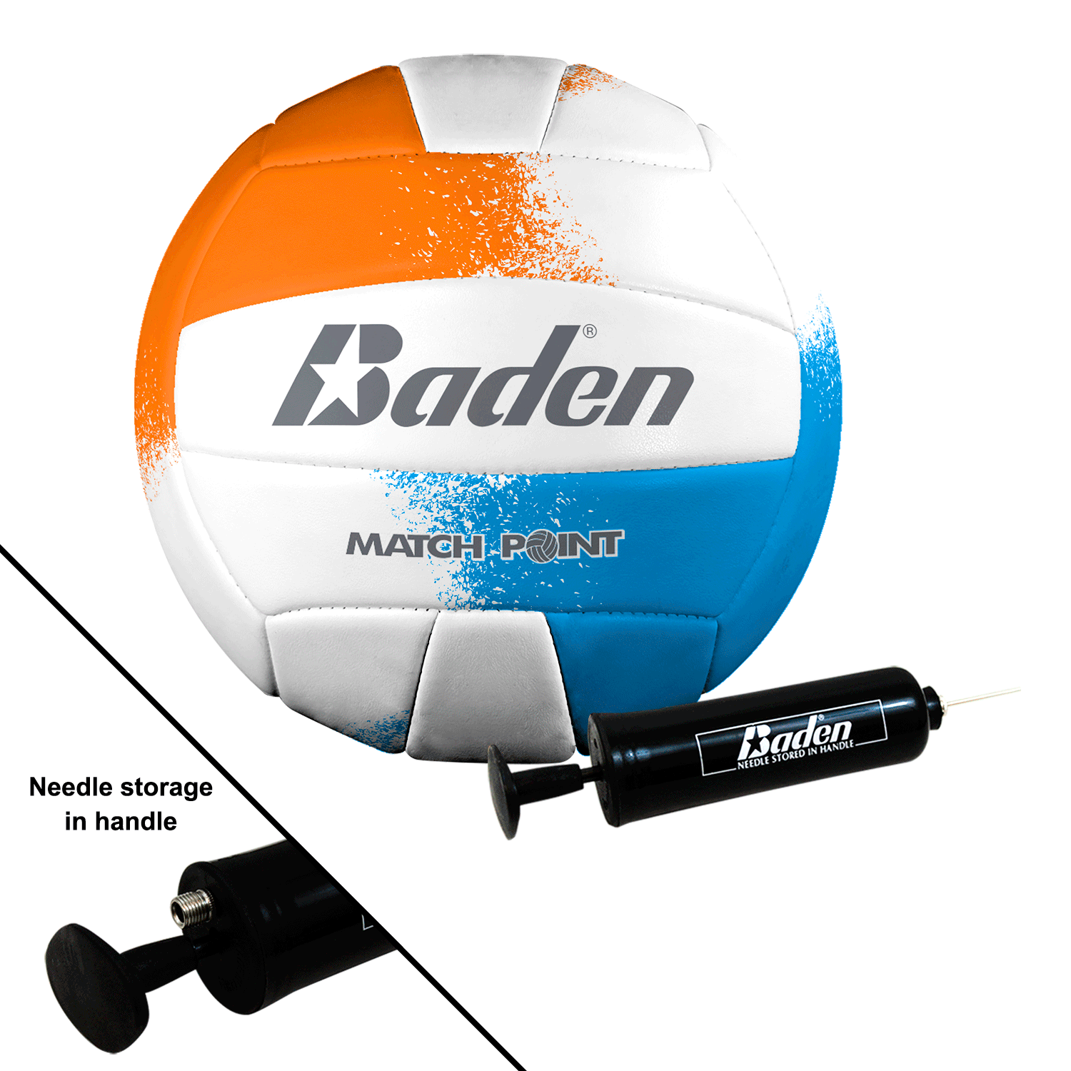 • Set includes - (1) 3’ x 32’ regulation size nylon volleyball and badminton net, (2) heavy duty steel poles, (2) Guylines with quick tension pull-down handles and 10” stakes, (1) high-quality Baden volleyball, (4) badminton racquets, (3) shuttlecocks, (1) 30’ x 60’ volleyball boundary line that converts to 20’ x 44’ badminton court, and (1) durable carrying case