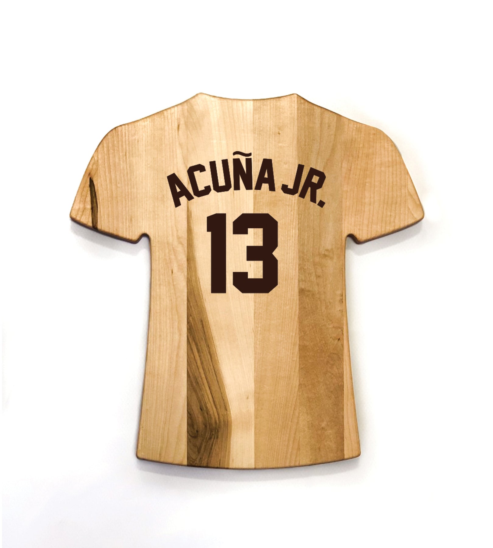 Double sided 17" "Jersey" board with team logo and championship engraved. Second version is custom engraved with player name and number on one side.