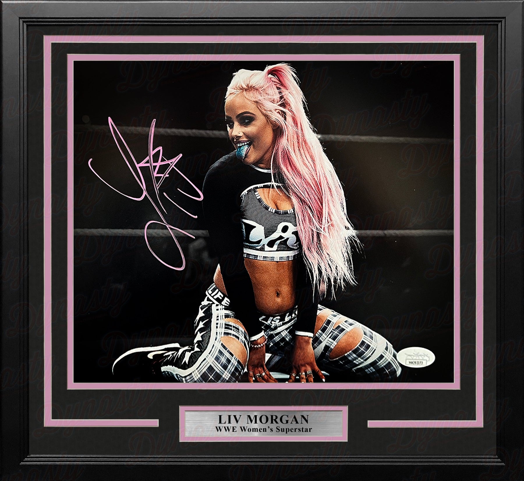 Signed picture of WWE wrestling star Liv Morgan; includes certificate of authenticity from James Spence Authentication (JSA)