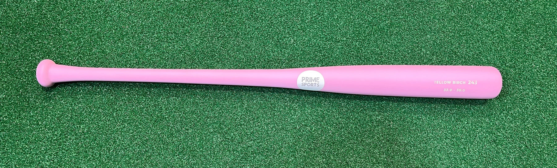 Pink Wood Bat, made from Canadian Yellow Birch, with custom Prime Sports Midwest Label.