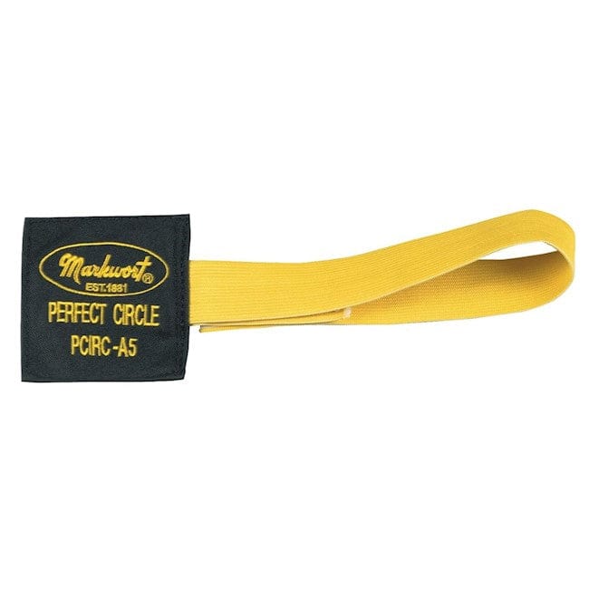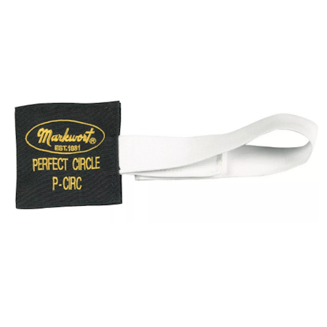 - Elastic band holds a square flap that fits around the upper thigh and extends out a few inches into the pitcher's release zone