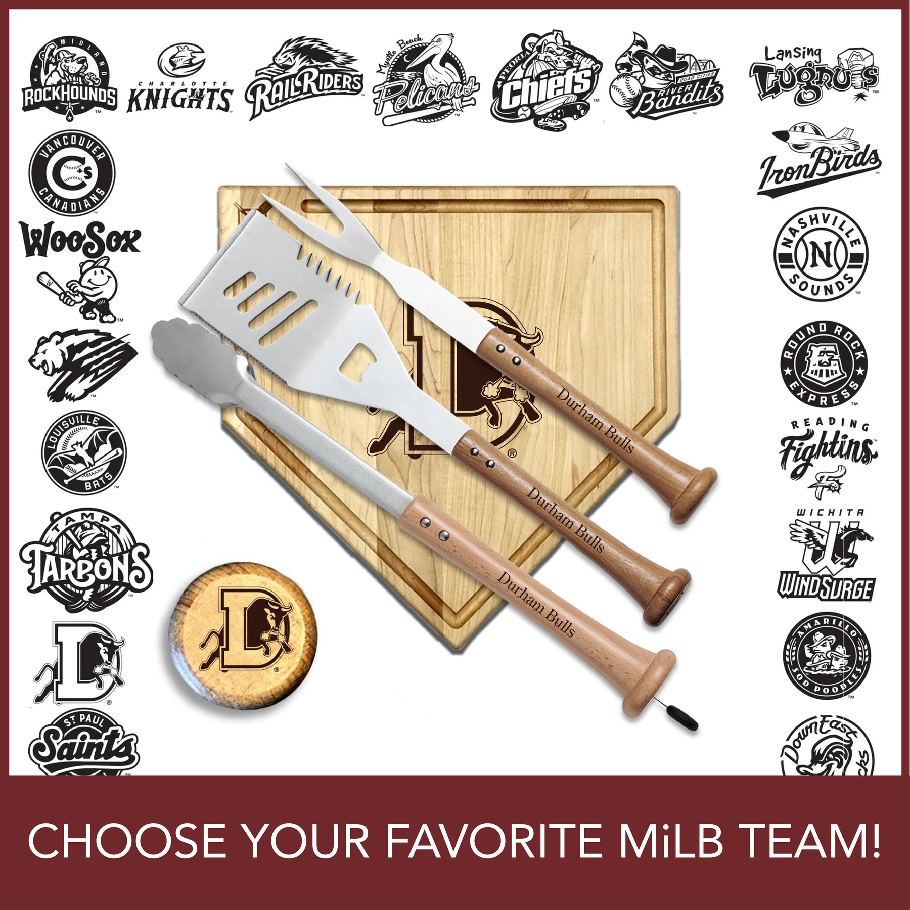 Minor League Baseball, or MiLB, is a hierarchy of professional baseball teams that are affiliated with Major League Baseball. Each team of the MLB has their own network of minor league teams (sometimes called “farm teams” or “farm leagues”) which are used for player development. But you already knew that, didn't you? As an official licensee of the MiLB — and die-hard fans of the leagues — we're excited to bring you our customers' favorite grill tools and cutting boards for every minor league baseball team in the league! Choose your team and the board that you'd like for us to make so you can rep your favorite MiLB team this season!