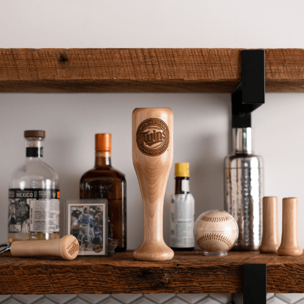 The Minnesota Twins Wined Up® a mini baseball bat wine glass. This 100% birch wood mini baseball bat is perfect to sip from on the patio, sitting poolside, while watching the "big game", or even tailgating.