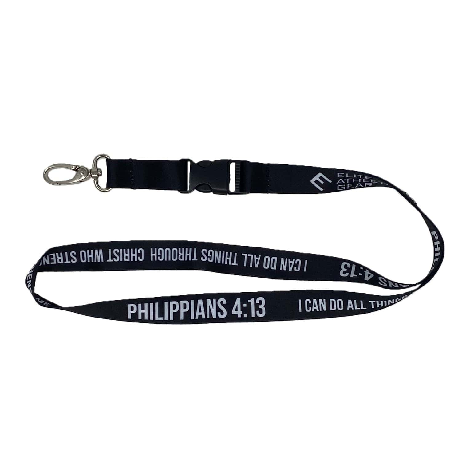 - DESIGN: Featuring our PHILIPPIANS 4:13 I CAN DO ALL THINGS THROUGH CHRIST WHO STRENGTHENS ME design throughout the lanyard on both sides.