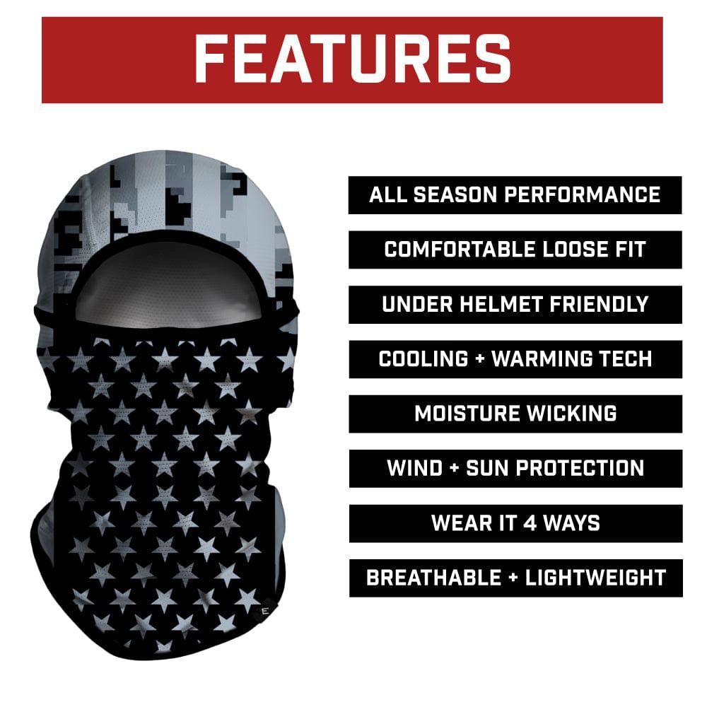 The Balaclava Mask keeps you cool and dry in the sun, warm in cold weather, and shielded from wind, turf burn, and UV rays.