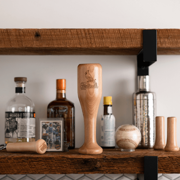 The St. Louis Cardinals Wined Up® - a mini baseball bat wine glass. This 100% birch wood mini baseball bat is perfect to sip from on the patio, sitting poolside, while watching the "big game", or even tailgating.