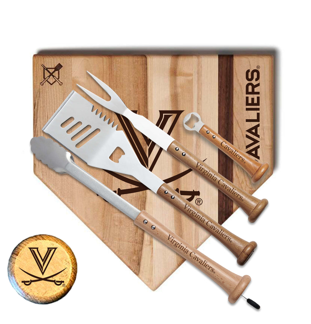 - Includes: "Slider" Spatula, "Forkball" Fork, "Pickoff" Bottle Opener, "Splitfinger" Tongs, and "Home Plate" Cutting Board